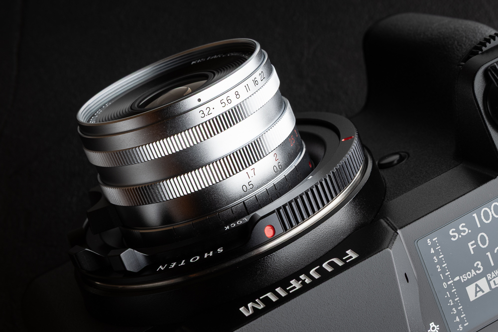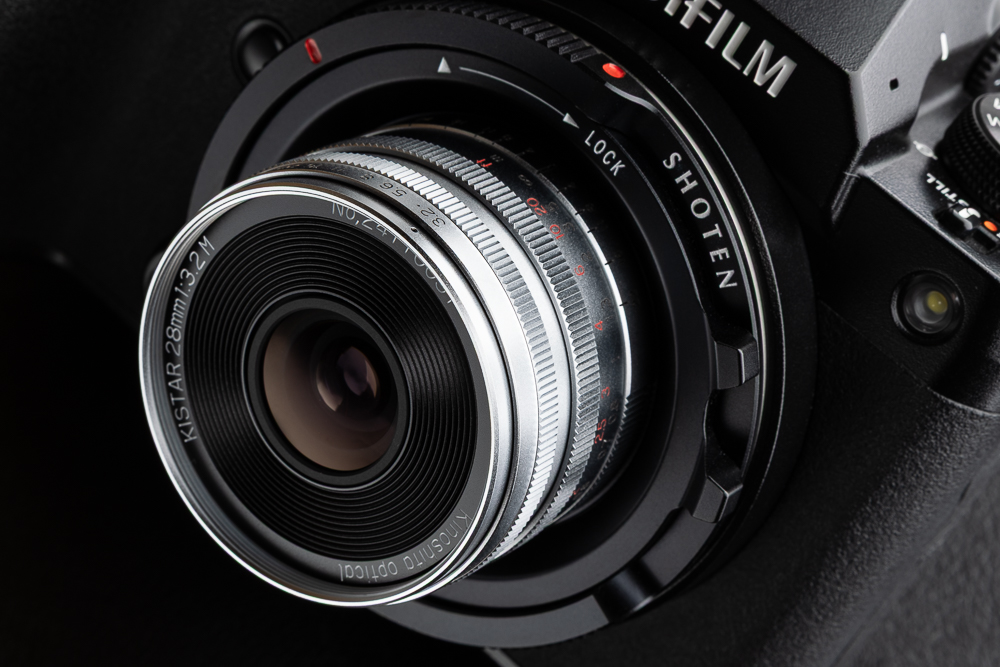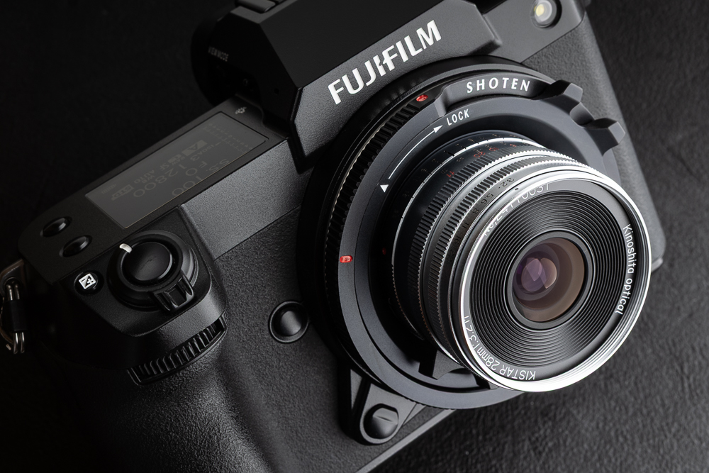 KISTAR 28mm F3.2 MはKLMマウントだ。SHOTEN製のライカMマウントアダプターを使い、GFXに装着している。