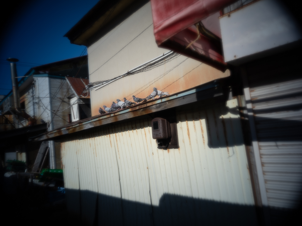 GFX50S II + KISTAR 28mm F3.2 M 絞り優先AE F3.2 1/1900秒 -0.67EV ISO100 AWB RAW ケラレがそれとなくトンネル風になり、潜望鏡でハトの群れを覗いているような雰囲気に。