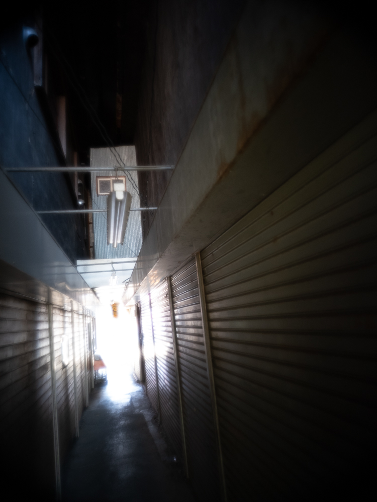 GFX50S II + KISTAR 28mm F3.2 M 絞り優先AE F3.2 1/40秒 -0.67EV ISO2500 AWB RAW 屋内の薄暗い通路を撮影。暗所撮影ではケラレがあまり気にならない。