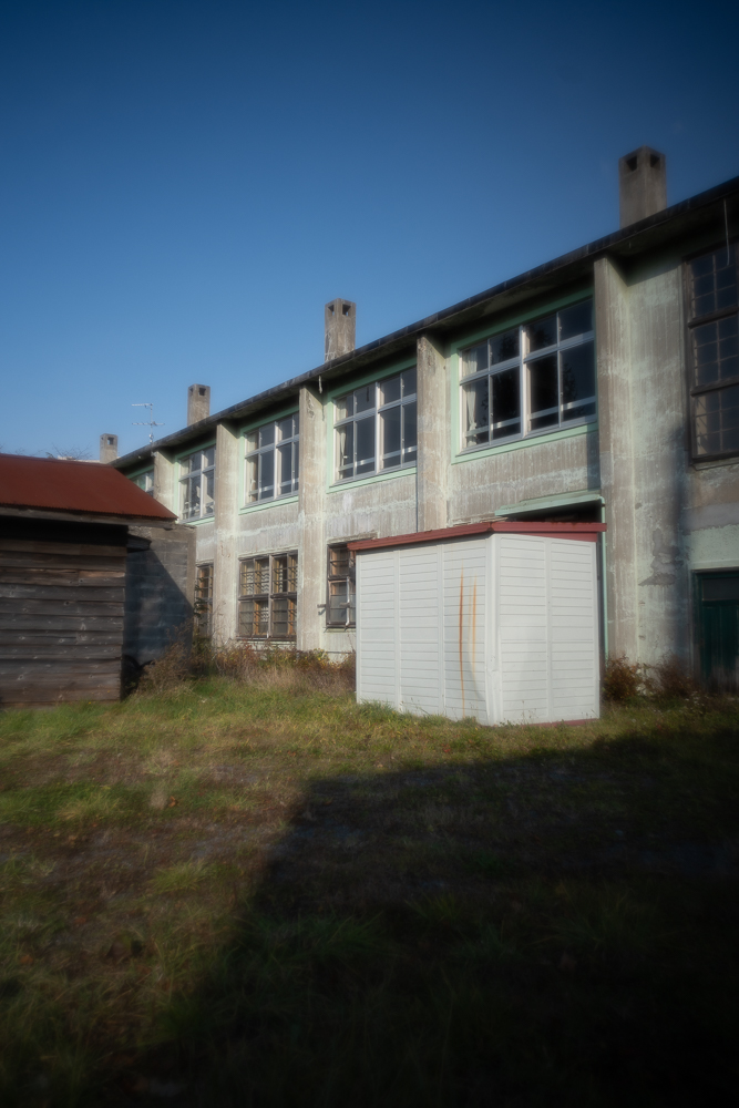 α7 Ⅳ + KISTAR 28mm F3.2 絞り優先AE F3.2 1/2000秒 ISO100 AWB RAW 晩秋の早朝、影の長い時間帯に廃校を開放撮影した。滲みはあるが、シャドウの締まりはいい。