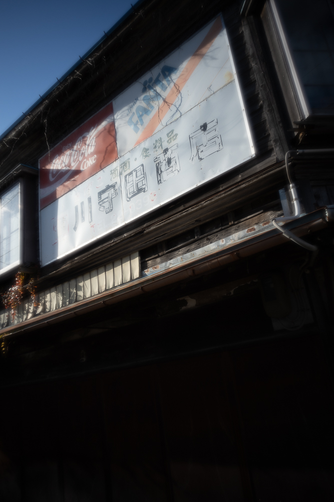 α7 Ⅳ + KISTAR 28mm F3.2 絞り優先AE F3.2 1/1250秒 -0.7EV ISO100 AWB RAW 古い看板が斜光を浴びていた。柔らかく光景を捉える一方、コントラストは思った以上にしっかりしている。